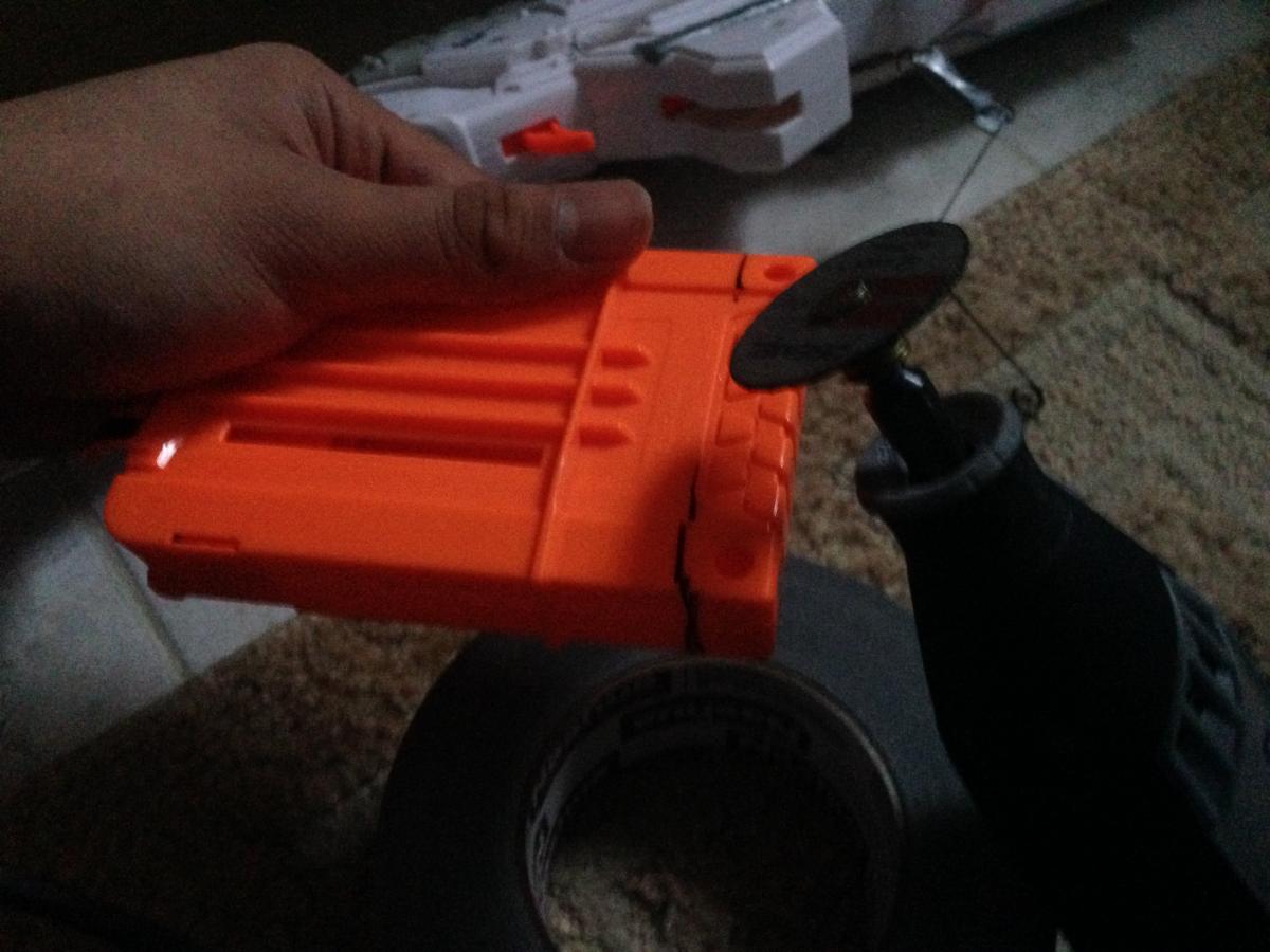 TED was actually the first person on NerfHaven known to have done it, but Slug is the one who wrote it up.  The funny thing is, he showed it to one of Hasbro's engineers in person, and the guy blew him off like he was unimpressed.  But 18 months later (the exact timeframe for Hasbro to go from concept to release) those extended mags started showing up on shelves.