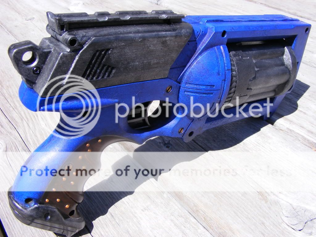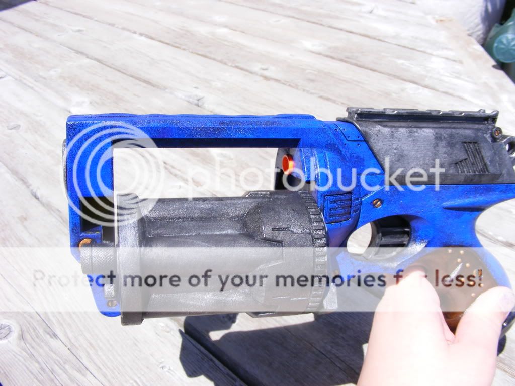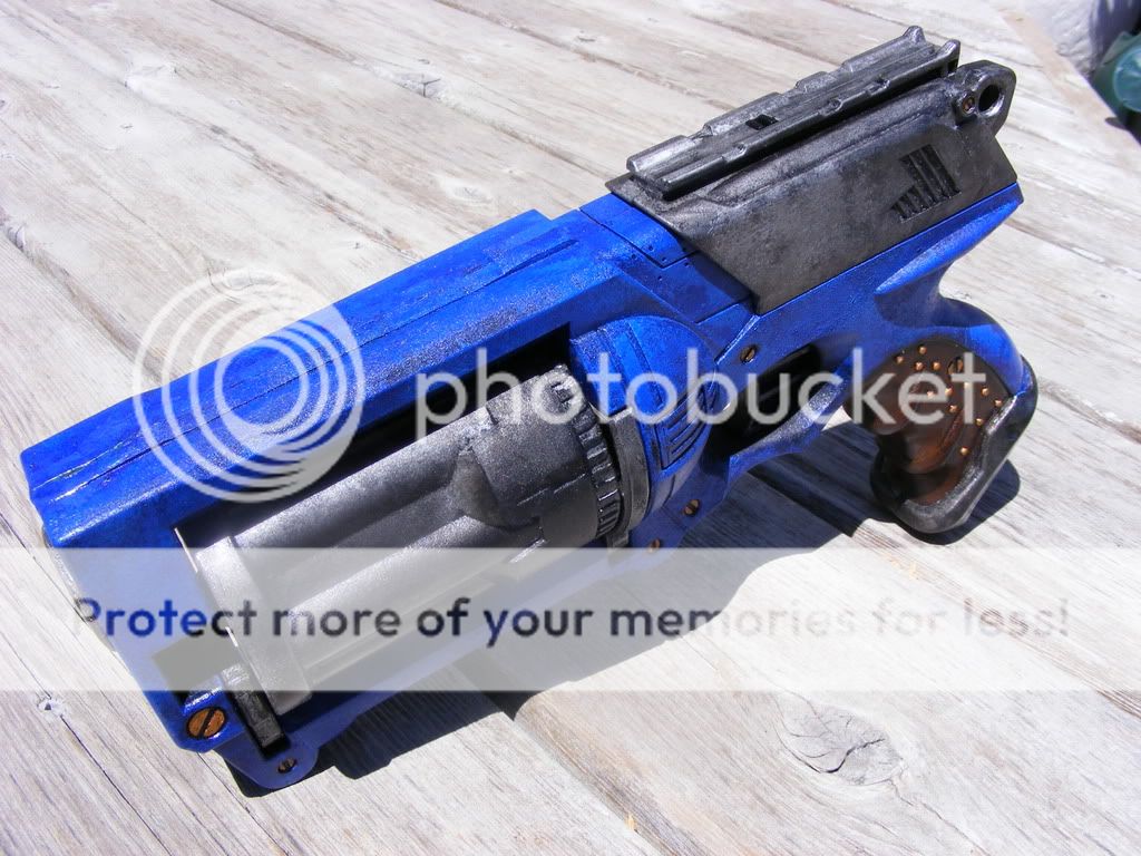 As you can see, I'm not TOTALLY done, because I still have to paint the laser casing, dart holders, and battery cover. But other than that this baby is DONE!