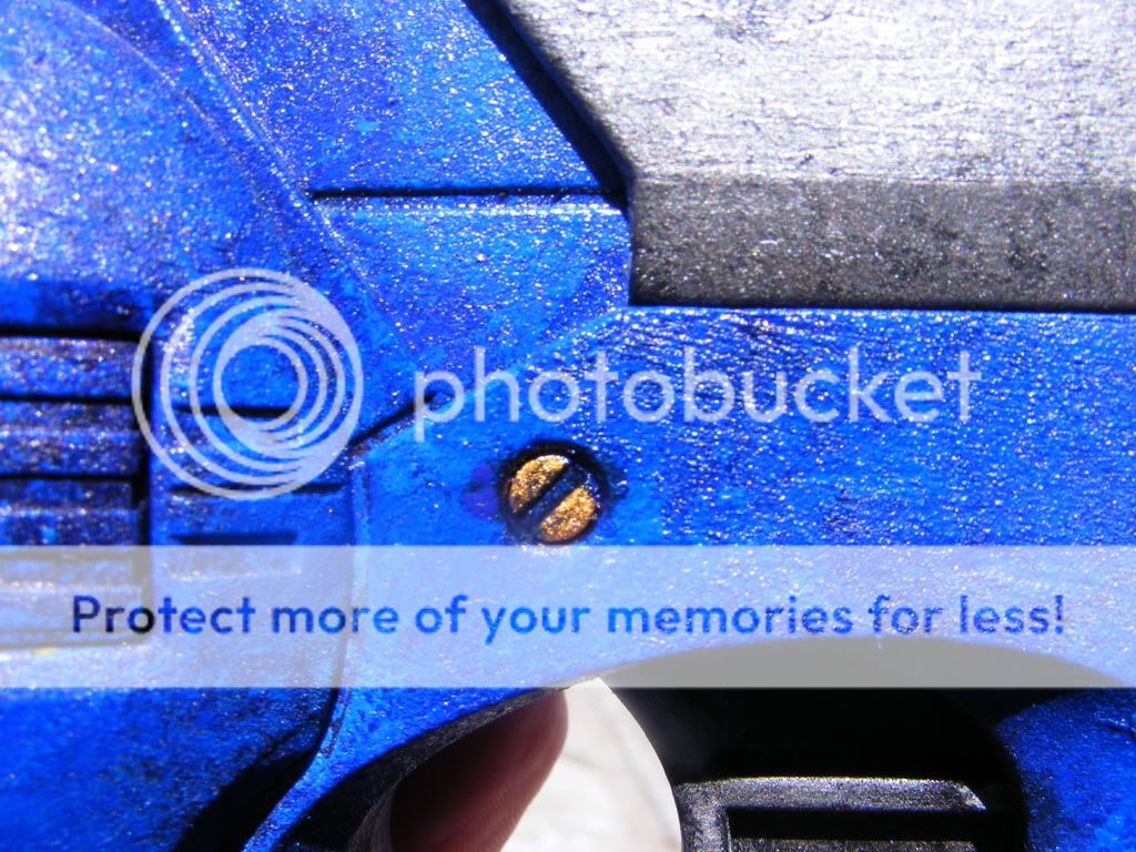Here is a view of the business end of the gun. As you can see, I put some blue craft foam on the plunger to match the paintjob.