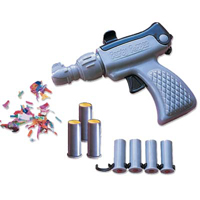 The confetti gun fires six rounds, but the standard ring cap consists of eight caps, meaning you will have to cut the caps individually for each shell. Funny thing is, if you watch the video closely, the guy at the end fires seven rounds. Strange, eh?