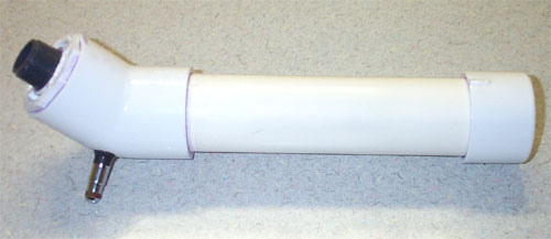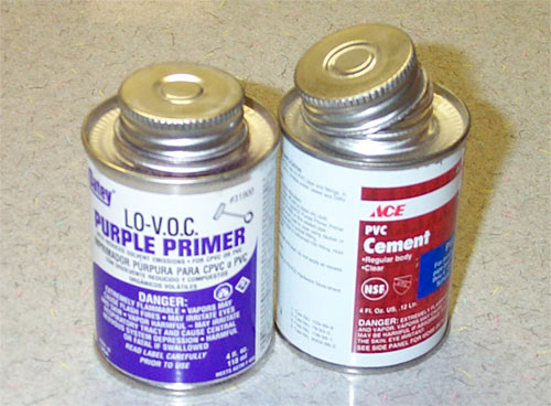 A word or two on glue will be necessary at this point. Not all glue is created equal and for this gun you absolutely must use the right glue or you will experience pain beyond description when the gun detonates in your hands. All socket type PVC joints in this gun must first be treated liberally on both surfaces with purple primer, then covered completely but not excessively with PVC cement. It must say "PVC Cement" on the can. Make sure the pipe is pushed all the way to the bottom of the socket. Let it cure for 24 hours before you pressurize it. Really.