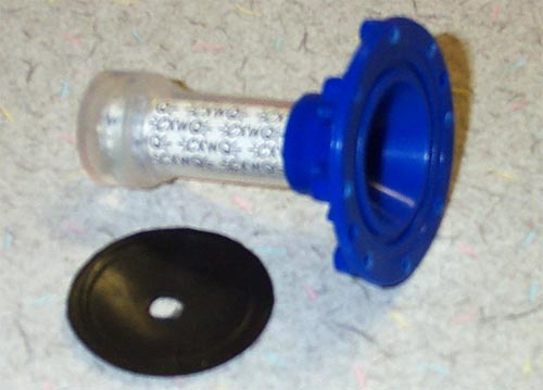 Next I unscrewed the goo tube. Be careful to hold it upside down (like in the picture) while unscrewing it so you don't make a mess. I then removed the rubber membrane, punched a hole in the middle of it, and drained the goo.