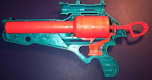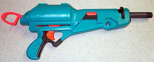This gun sucks. Look at it. When you fold down the front handle the barrel and stock pop out and supposedly enhance it in some way. Out of the box it barely shoots 20'.The first thing I did was open it up and remove all the stuff that makes the stock and barrel pop out. Next I picked out a nice replacement barrel for it. That oversized plunger tube generates a very fast airflow for a spring gun but as a result it doesn't have much force behind it. I decided to go with SCH 80 PVC since the 17/32" ID offers a slightly loose fit with micro stefans.