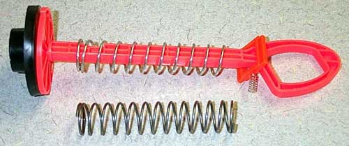 Next I removed the spring and replaced it with something a little stronger. The new one is in place and the old one is below it for comparison. I got the spring at OSH - it was originally twice this long but I cut it in half so it would work here.