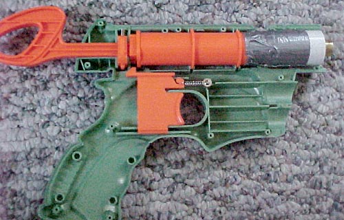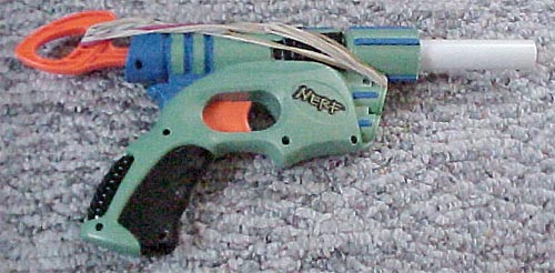 I want the point out the difference in this and the old way. Here it is, for you who care. The earlier version was getting about 50' flat; now I get more around 70'. The gun has devistating velocity, and great accuracy. The only complaint is the reload time, which is close the that of a Max Shot. When used as a side-arm to a weapon with a good ROF, this thing is a frickin' beast. Alright, I'm done for the night, and I'm sorry about how long it took me to do this. I was having pic problems, and ended up losing half of the pics.
