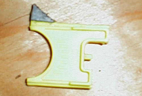 The second thing that needs to be done is to reinforce the plunger shaft. These things are way too weak, and will eventually crack if you replace the spring or band it, maybe even if you don't. What I did was to plumbers goop in a metal rod at the notch in the shaft (one on each side). Then, to keep that piece from pivoting I gooped-in another rod above it and behind the notch-wall. It really doesn't matter what sort of rod you use, whether you go out and buy steel rod, or just cut the head off of a nail. Make sure that if any goop protrudes out from the width of the rod, you sand it off when the shaft is dry. Otherwise your plunger will stick when you pull back, and also when you fire. To increase plunger efficiency, I used some lightweight masking tape around the rubber plunger head to make it wider. I also applied graphite lubricant to the inside wall of the yellow plunger tube.