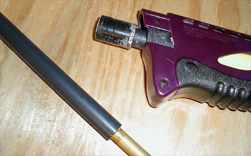 Your gun is now ready, but you'll need a barrel. Because of the 1/2" coupler, you'll be able to put on any variety of barrels via 1/2" PVC. The barrel that I chose to use, because it suits my darts the best is a 3 sectioned telescoping brass barrel. To make the barrel, take 10" of 1/2" sch. 80 PVC, place inside of that 12" of 9/16" inch brass. The brass should stick 3 inches out of the back (the distance from coupler to coupler, not a coincidence) inside of the 12" brass section is a 6" piece of 17/32" brass. This should stick out the back of the 9/16" about 1/8" of an inch, as little as possible.